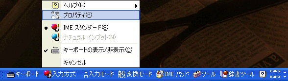左から2番目の入力方式を左クリックするとポップアップメニューが出ます。